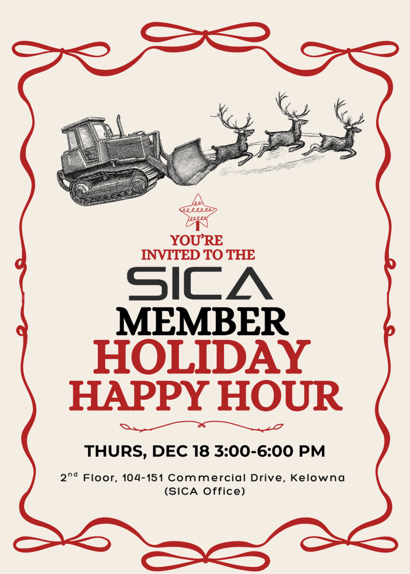 Home / Meetings & Events / Upcoming Events & Meetings Upcoming Events & Meetings BACK TO EVENT CALENDAR 18Dec SICA Holiday Happy Hour Single-day Event 2025-12-18 15:00:00 | 2025-12-18 18:00:00 Show more... Single-day Event:\n\n2025-12-18 15:00:00 | 2025-12-18 18:00:00\n Location Title: SICA Office Kelowna City: Kelowna Address: 104-151 Commercial Drive V1Y6A3 You're Invited Join us for SICA’s Holiday Happy Hour! Swing by the SICA office for a festive drop-in celebration, sip on something tasty, grab a bite, and kick off the holidays with fellow SICA Members. We’ll have good vibes, good company, and a photo booth sponsored by Wilson M Beck Insurance so you can snag team photos before the year wraps up. This event is complimentary for SICA Members, and we just ask that you RSVP so we can plan food and drinks for everyone. Can’t wait to celebrate with you! Cancellation Policy Select Ticket Type $0.00 Ticket Not Available? Click here to add yourself to the waitlist. Please describe the ticket type you would like to purchase. SICA Holiday Happy Hour is currently full. Please continue to checkout or add your email address to the waiting list Register Now! Add to selected and Register Later Share Event Download to Calendar